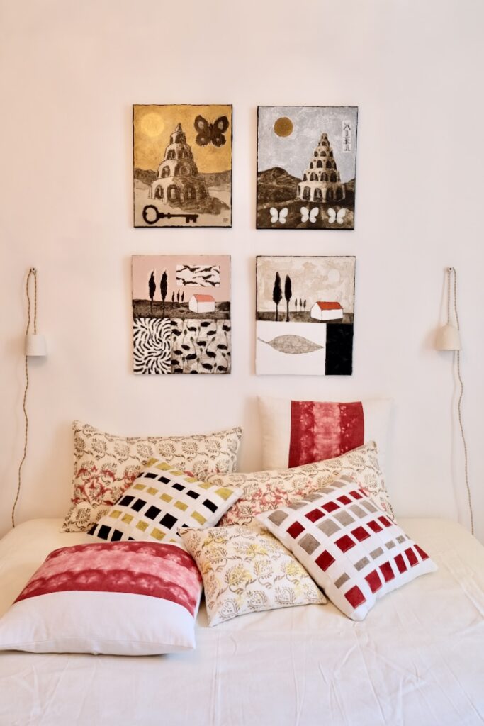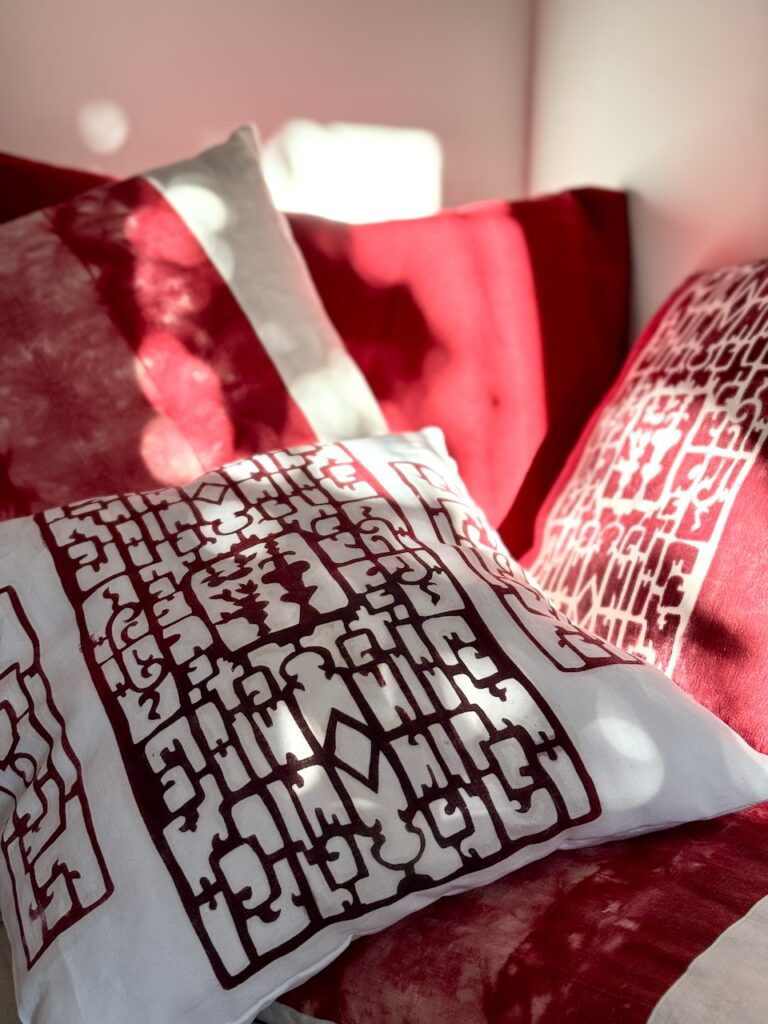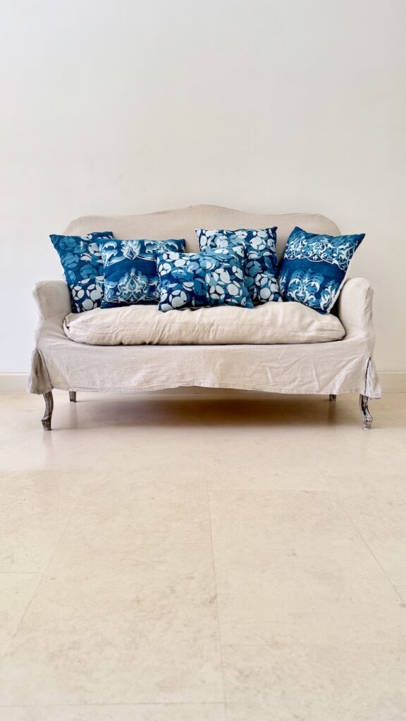 Some shots of my latest creations around homes in Provence with Indigo shiboris and norizome as well as bingata on Madder and Reseda. All products are linked to the relevant item in the shop