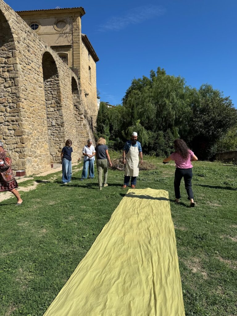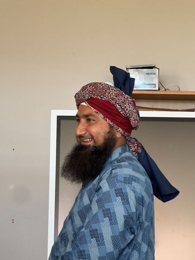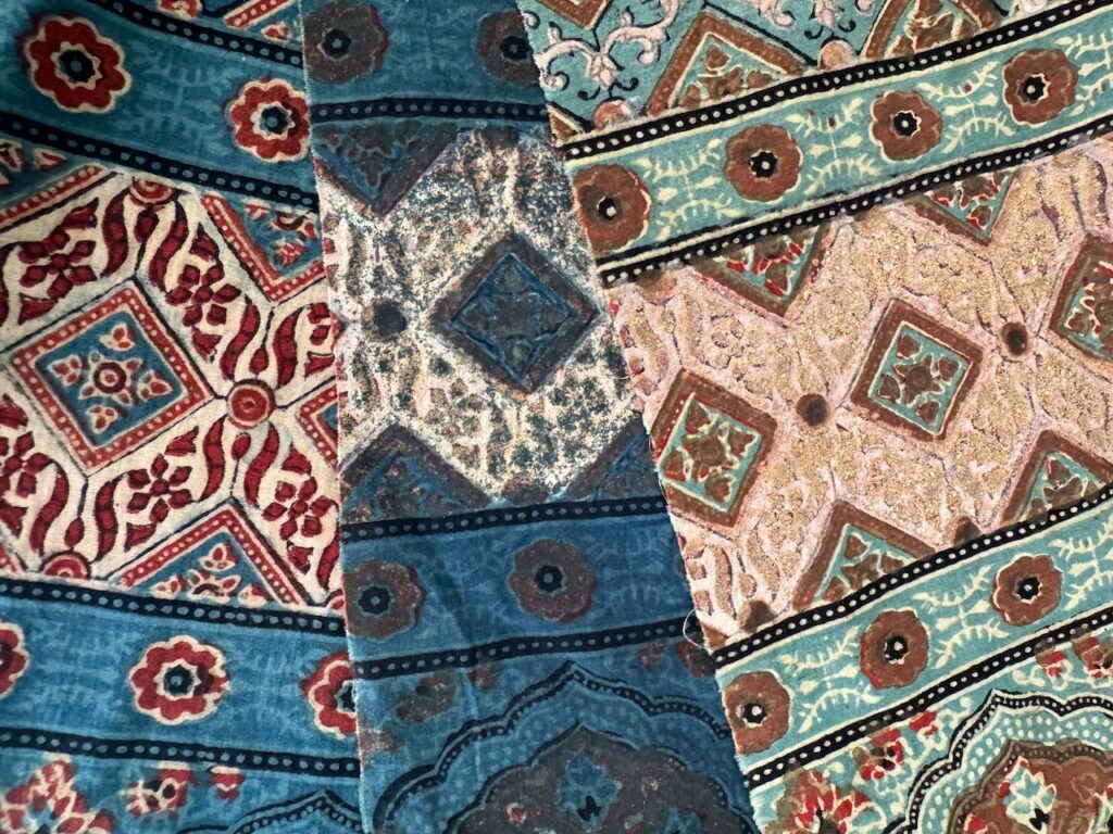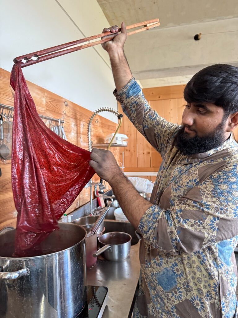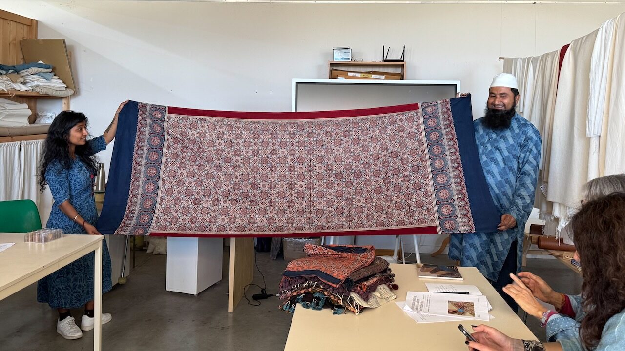 A real honour and pleasure to learn a centuries old craft from Master Sufiyan Khatri who caries his art from several generations of masters in Ajrakh printing. Along with his son and Parmeet Kaur Tesson, they tought us the steps and the concepts. While Block printing is an age old art in many part of India, the technique of Ajrakh printing differs from others by applying resist pastes and dying in vats instead of direct printing.